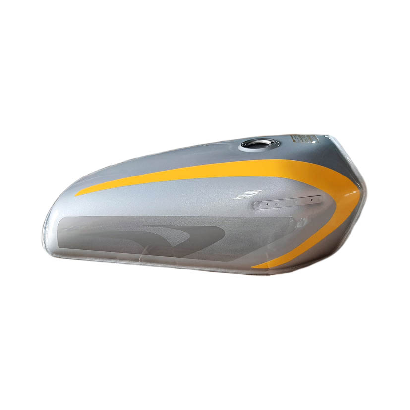 باک موتورسیکلت کاربراتور نقره ای کاستوم زرد